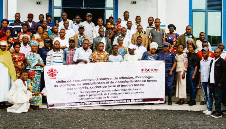 Dans le souci d’accompagner les personnes déplacées et sinistrées, la Caritas Goma à travers son département de la Commission Diocésaine Justice et Paix (CDJP) a mis en place le jeudi et vendredi 16 et 17 février 2023, un atelier sur ‘‘la concertation d’analyse, de réflexion, d’échange, de plaidoyer, de sensibilisation et de conscientisation en faveur des autorités, cadre de base et locaux’’ dans la localité de Kanyaruchinya. Ceci, dans le cadre du projet de soutien aux personnes vulnérables déplacées dans la périphérie de Goma, avec une attention particulière pour les femmes, un projet financé par Misereor.